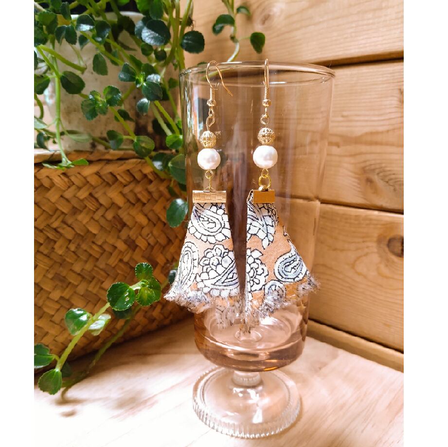 ベージュの生地にペイズリー柄がかわいいピアスです。