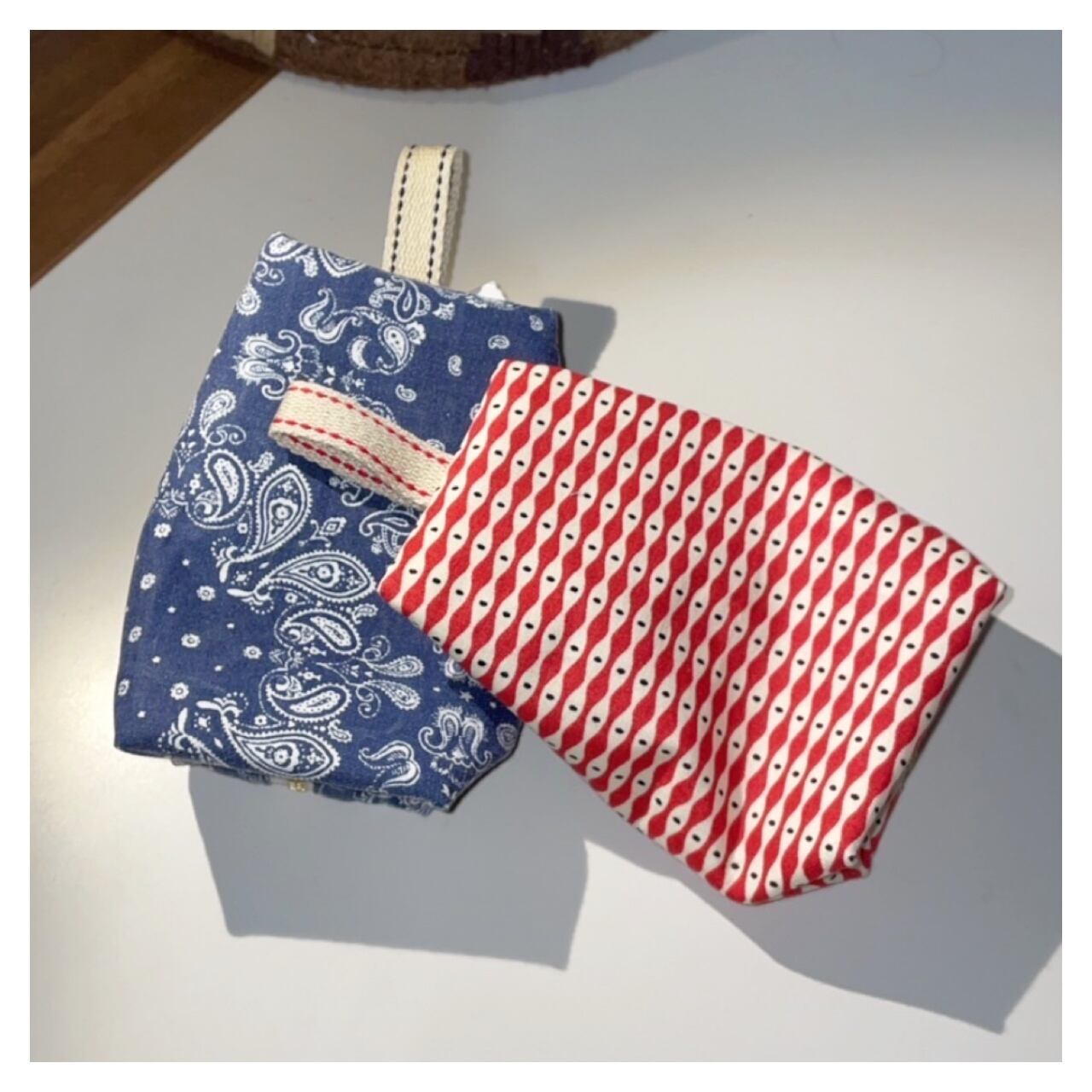 洋 の作品で、ミニポーチ(ブルー,レッド)です。