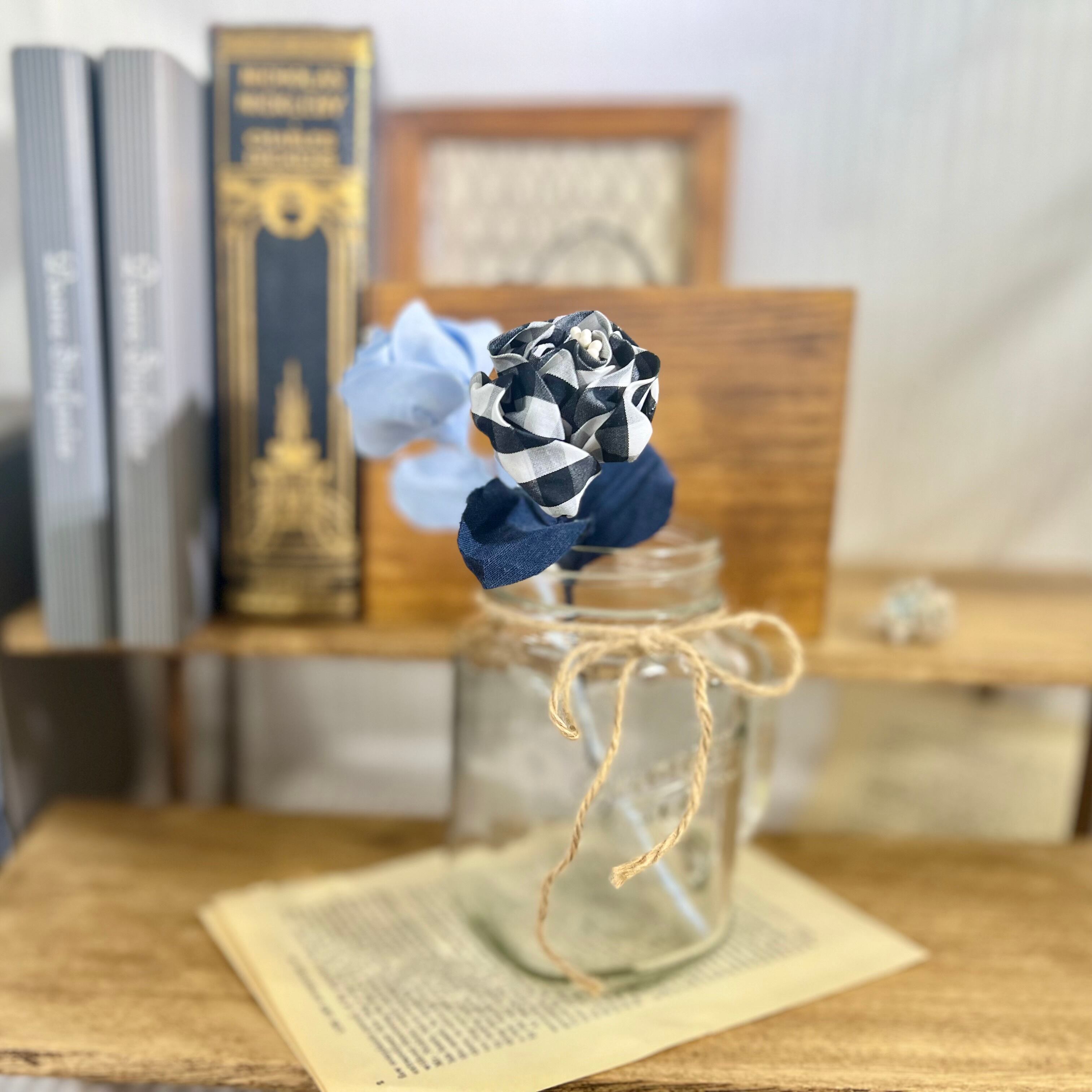 シャツ生地を使用したつまみ細工のインテリア雑貨、ファブリックフラワーのご紹介です。